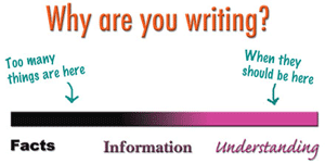 When a non-fiction book (especially a tech book) doesn’t sell, or a training course isn’t successful, it’s often because the reader was on one end of the graph while the writer/course developer was on the other. Or because the author/teacher believed that giving information was the way to communicate knowledge and understanding.”