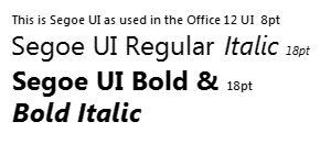 The result is a font called “Segoe UI” which will ship in both Office 12 and Windows Vista. It was conceived, designed, and totally optimized for ClearType, and I think it’s beautiful at both small and larger point sizes.”