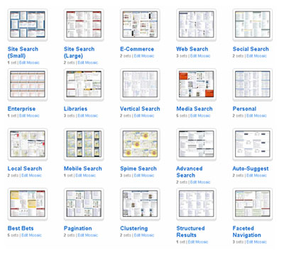 Please add tags, notes, and comments, and suggest new examples. Over time, I hope to include patterns that illustrate user behavior and the information architecture of search.