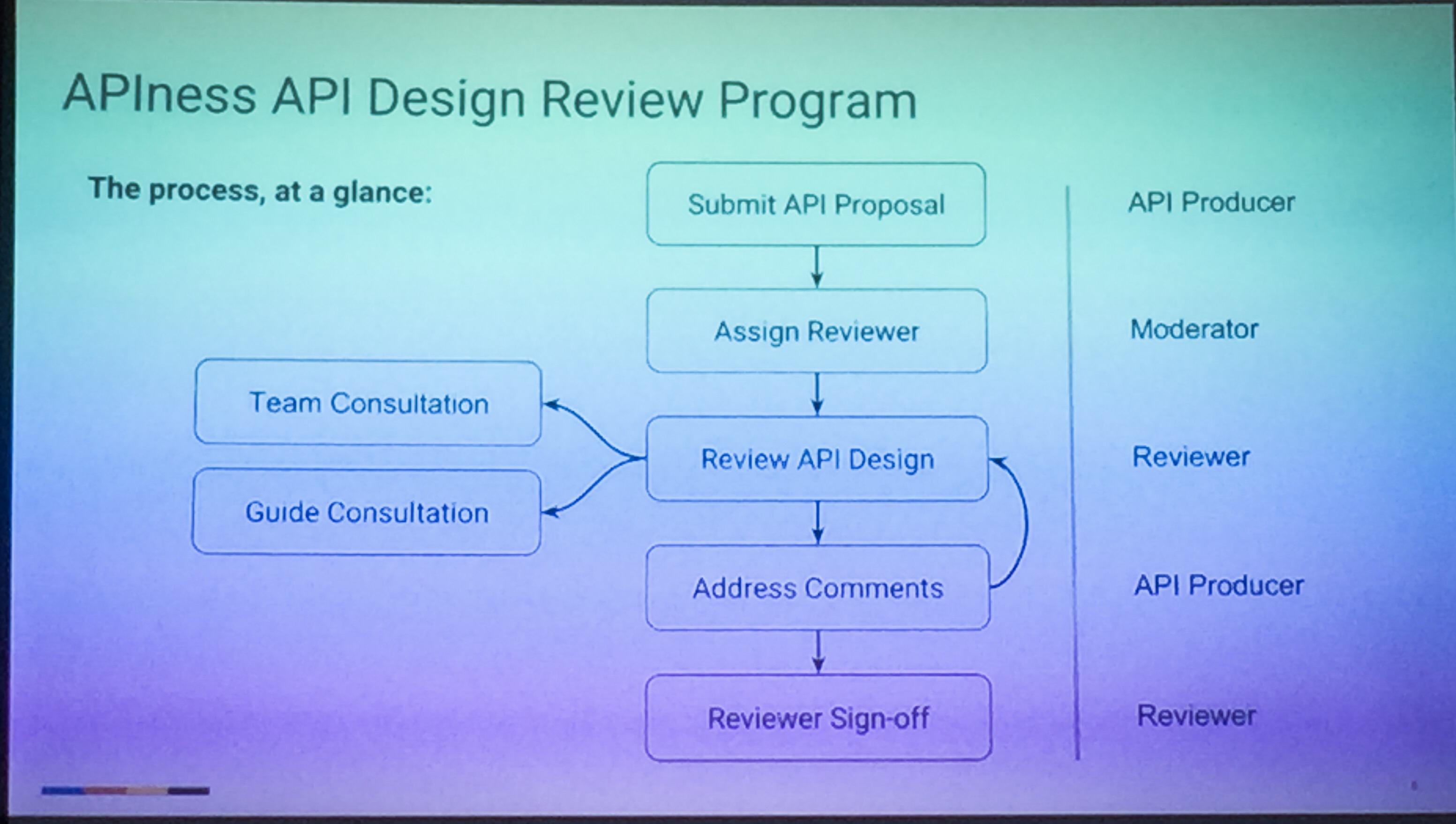 Die Reviewer nutzen heuristische Evaluation, Nutzer-Feedback und das Wissen von anderen Google-APIs um Konsistenz und eine gute Usability zu erreichen. Aktuell sind 43 APIs durch diesen Prozess gelaufen, der regelmäßig mittels Fragenbogen und Interviews bewertet wird.