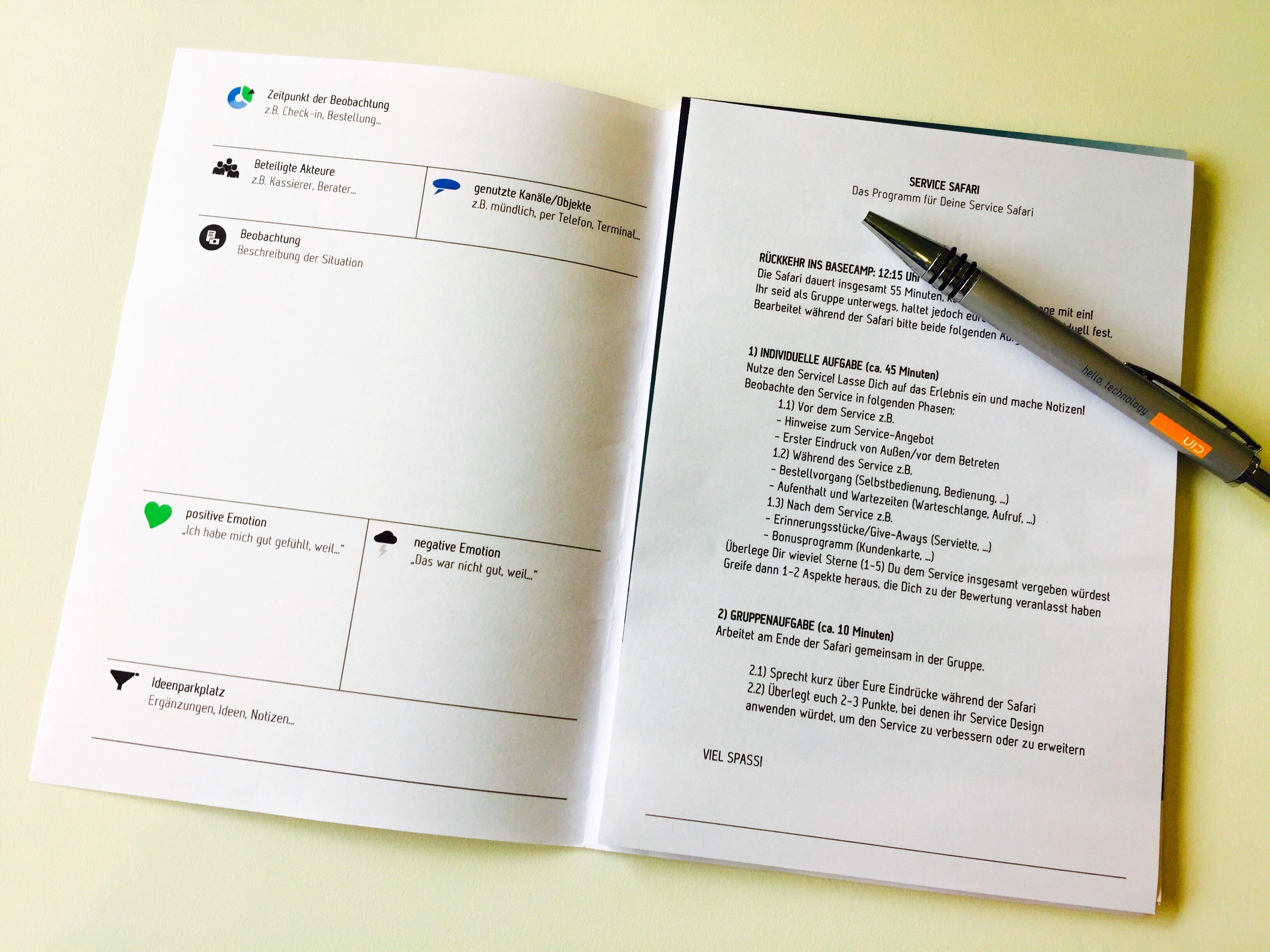 Bei klassischen User Research-Methoden, wie z.B. dem Contextual Inquiry, geht es darum Anwender zu beobachten und aus dem Verhalten der Anwender Schlüsse zu ziehen. Bei Service Safaris oder Service Design Safaris erfahren User Researcher, Designer und Andere einen Service am eigenen Leib und untersuchen so den Service aus Kundenperspektive. Die Erkenntnisse werden in einer Art Tagebüchern festgehalten und in sogenannten Service Blueprints visualisiert.