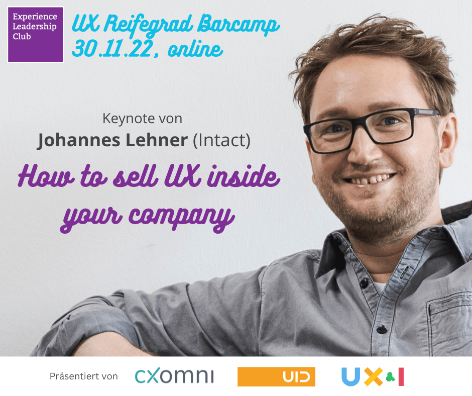 Johannes Lehner (Intact) schloss den fachlichen Teil des UX-Reifegrad Barcamps Dreamer mit seinen Erfahrungen bei der Etablierung von UX. Er beschrieb sehr konkret seine Reise im Unternehmen, die Fähigkeiten, die ihm dabei geholfen haben, und welche Vorgehensweisen bei ihm gut funktioniert haben.